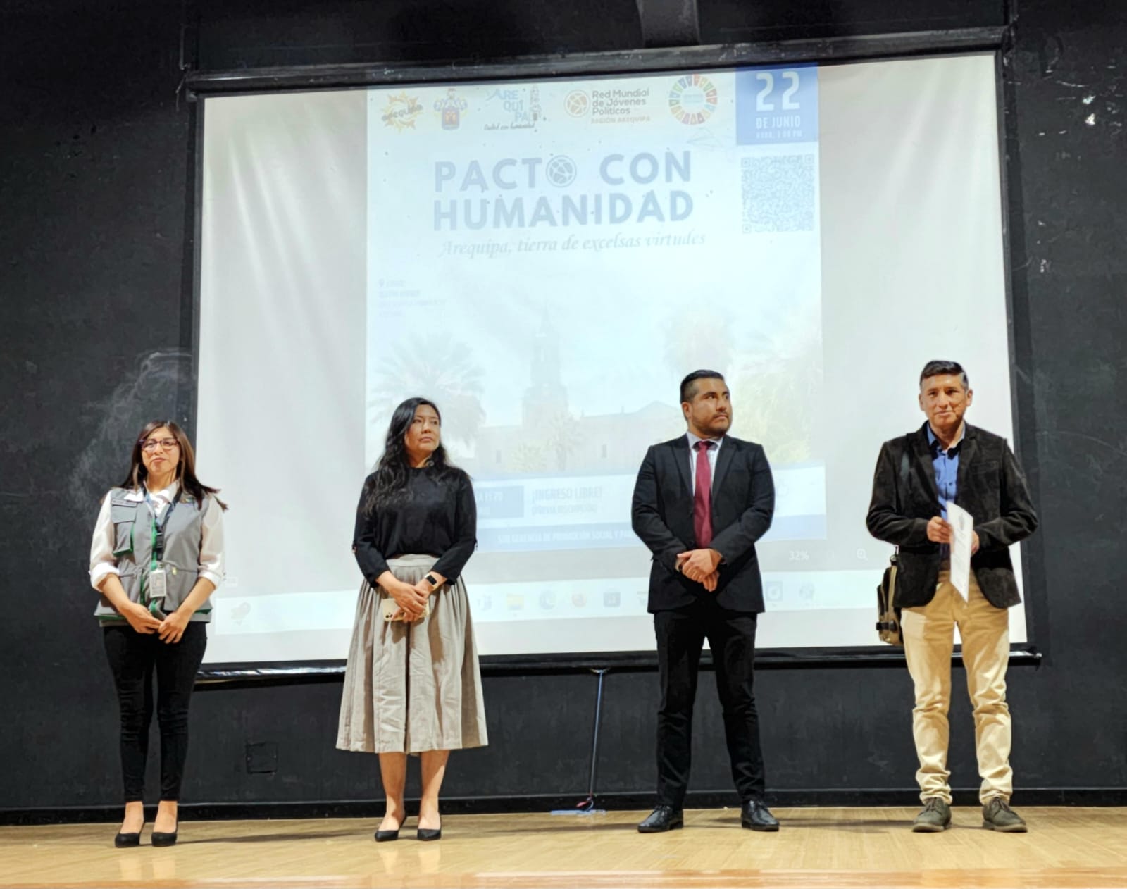 El pasado 22 de junio a las 3:00 p.m., en el Teatro Ateneo, se llevó a cabo el evento "Pacto con Humanidad: Arequipa, tierra de excelsas virtudes", organizado por la Red Mundial de Jóvenes Políticos y respaldado por el Gobierno Regional de Arequipa. En esta ocasión, el Centro de Investigación en Geociencias y Cambio Climático (CIGECC) tuvo una breve pero destacada participación con una charla impartida por su presidenta, la Ing. Rosa María Anccasi Figueroa. Durante su intervención, presentó los fines y objetivos de CIGECC, subrayando su rol como una asociación sin fines de lucro dedicada a la gestión de riesgos de desastres. Además, otros miembros de la directiva de CIGECC estuvieron presentes, como la Dra. Rossibel Churata, el Ing. Daniel Ramírez y el Lic. Fredy Apaza, quienes también contribuyeron al éxito del evento. Cabe resaltar que este fue el primer evento en el que CIGECC participó de manera presencial, lo que permitió fortalecer los lazos con diversas organizaciones, tales como Cuenta Perú, la REGRID, y el Colegio de Sociólogos de Arequipa, entre otras, las cuales también presentaron sus trabajos y temas afines a sus objetivos.